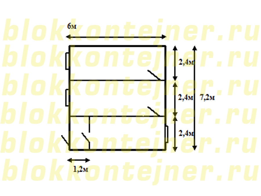 Модульное здание 6*7,2*2,5 м.-1шт,  состоит из 3-х  БК  6,0*2,4*2,5 м.